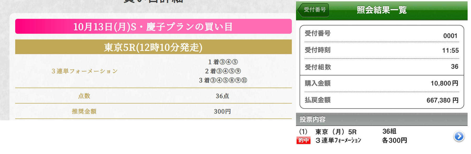 9月の的中ですが自慢しても良いですか!?慶子さんの的中です。いつも助けてもらってますので自慢したいです。
