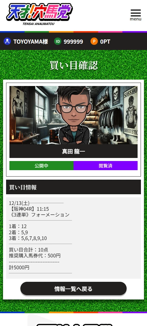利用してまだ少しですが、僕は馬券を買うなら少しでもプラスになればいいっていう考えなので、穴馬党はそのニーズに合ってるような気がします。